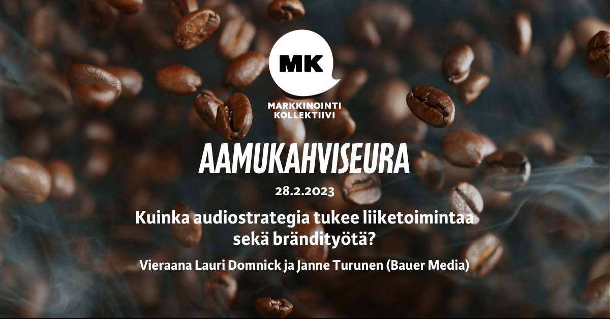 KATSO TALLENNE: MK Aamukahviseura 28.2.2023: Kuinka audiostrategia tukee liiketoimintaa sekä brändityötä? Vieraana Lauri Domnick ja Janne Turunen (Bauer Media)