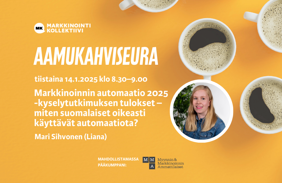 KATSO TALLENNE: MK Aamukahviseura 14.1.2025: Markkinoinnin automaatio 2025 -kyselytutkimuksen tulokset – miten suomalaiset oikeasti käyttävät automaatiota? Vieraana Mari Sihvonen (Liana)
