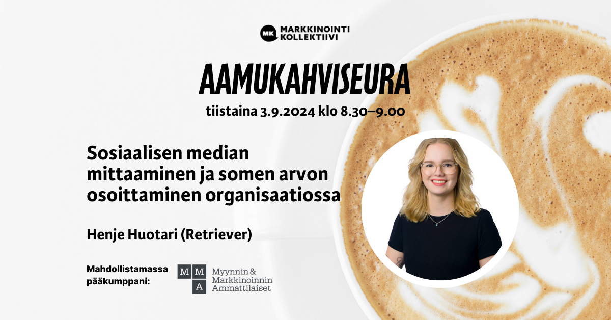 KATSO TALLENNE: MK Aamukahviseura 3.9.2024: Sosiaalisen median mittaaminen ja somen arvon osoittaminen organisaatiossa, vieraana Henje Huotari (Retriever)