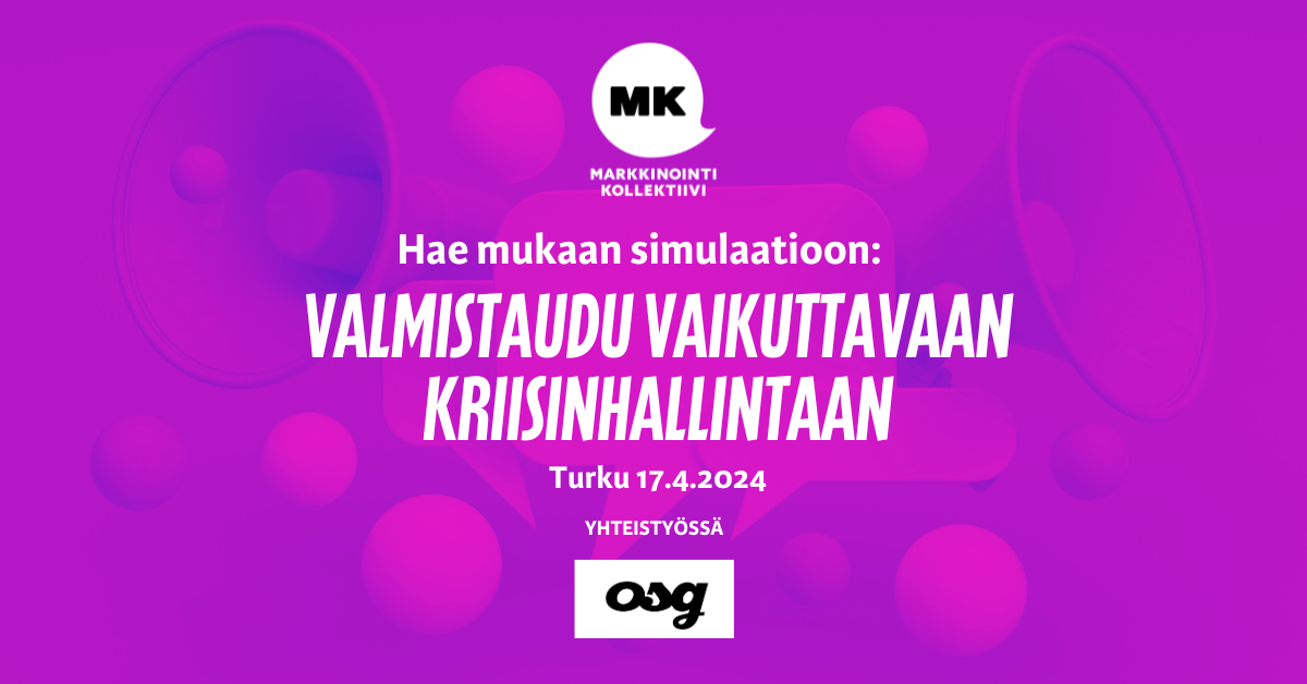 Ps. Simulaation jälkeen 17.4.24 klo 14 alkaen Finnkino Kinpalatsissa alkaa MarkkinointiKollektiivin veloitukseton tilaisuus. Lue ohjelma ja ilmoittaudu mukaan!